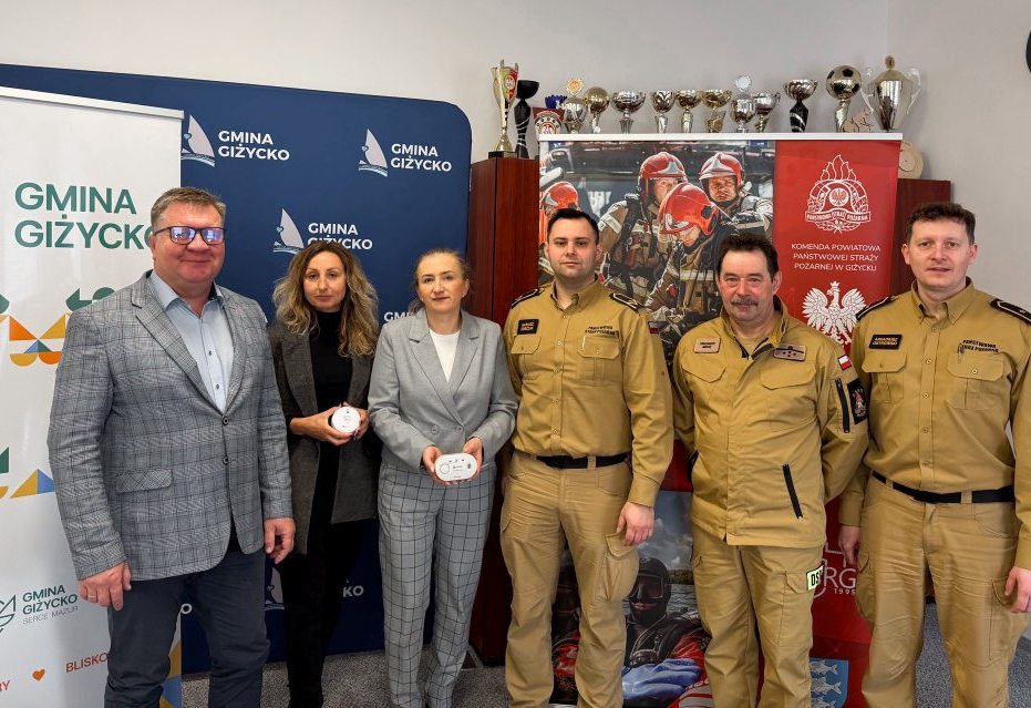 Do Gminy Giżycko trafiło 29 czujników zwiększających bezpieczeństwo mieszkańców – 5 czujników tlenku węgla oraz 24 czujniki dymu. Urządzenia zostały przekazane przez Komendę Powiatową Państwowej Straży Pożarnej w Giżycku.