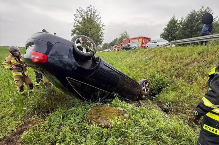 W czwartek (10 lipca) około godziny 15:48 służby ratunkowe zostały zadysponowane do zdarzenia drogowego na trasie między miejscowościami Siedliska – Sucholaski (gm. Wydminy). Doszło tam do dachowania samochodu osobowego marki Audi.