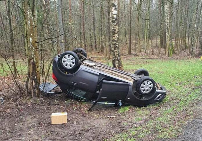 We wtorek, 2 kwietnia tuż przed południem na drodze krajowej numer 59 na wysokości miejscowości Wejdyki (gmina Ryn) kierująca oplem zjechała na pobocze i dachowała.
