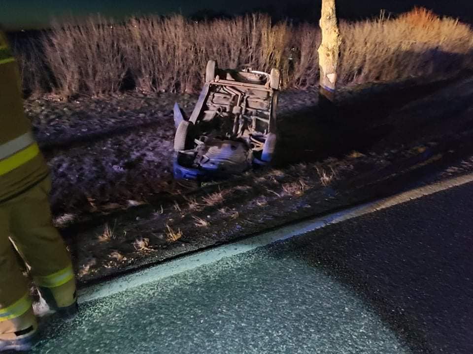W sobotni poranek (15 stycznia) doszło do dachowania samochodu osobowego na trasie Giżycko-Węgorzewo.