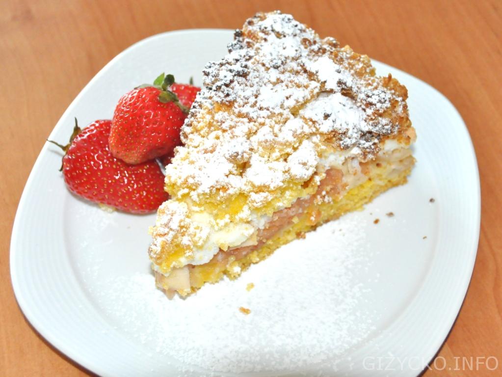 Pyszna, obłędnie pyszna, na pewno nie skończy się na jednym kawałku. Z blaszki znika zawsze błyskawicznie, nim się obejrzysz nie będzie już połowy blaszki 😉 Cudowny zapach cynamonu, który wydobywa się podczas pieczenia zwabi nawet sąsiadkę;). Delikatne ciasto, duża warstwa jabłek , beza i kruszonka- to najlepsza szarlotka na świecie. Przepis pochodzi ze starego zeszytu z przepisami Mamy, a dzięki jej radom zapisanym na marginesie zawsze się udaje.