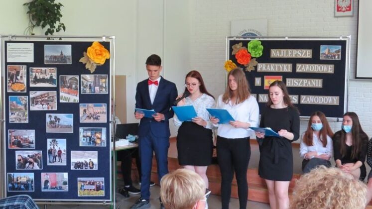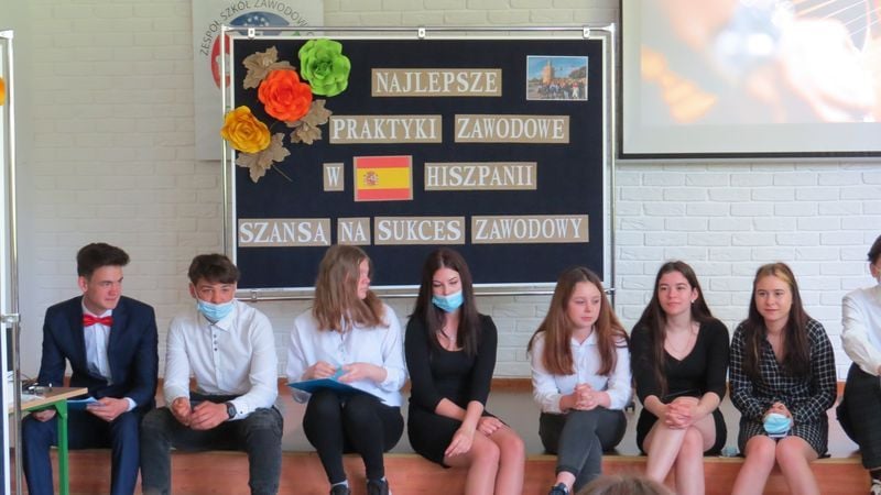 Na uroczystym apelu uczniowie opowiadali o swoich doświadczeniach zdobytych u hiszpańskich pracodawców.