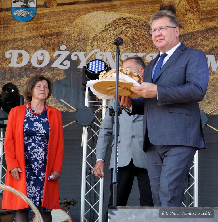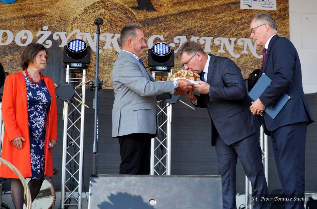 W rolę dożynkowych starostów wcielili się Barbara Niedziejko z Sołdan trudniąca się hodowlą owiec i uprawiający zboże Zdzisław Buczko z Kożuch Wielkich. Przekazali staroście giżyckiemu Mirosławowi Drzażdżewskiemu i wójtowi Markowi Jasudowiczowi dożynkowy chleb wypieczony z tegorocznych ziaren, a parlamentarzyści oraz przedstawiciele lokalnych samorządów złożyli hołd i skierowali słowa podziękowania w stronę wszystkich rolników.