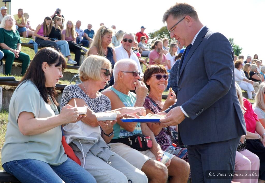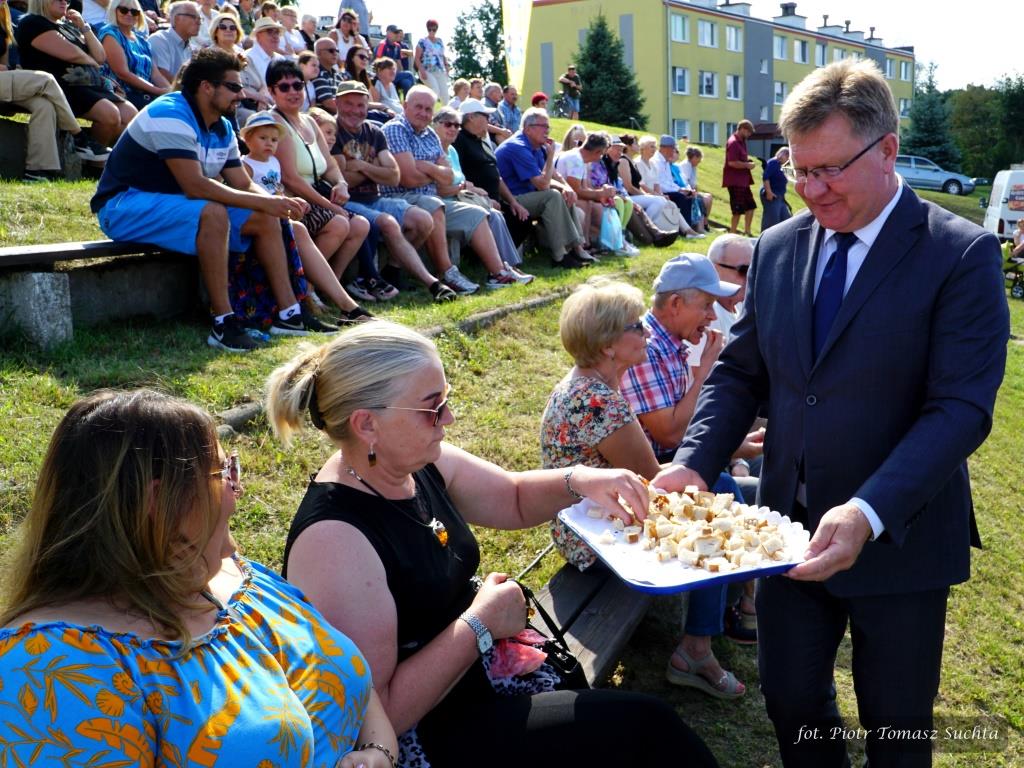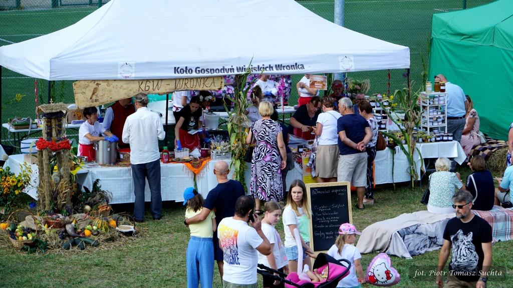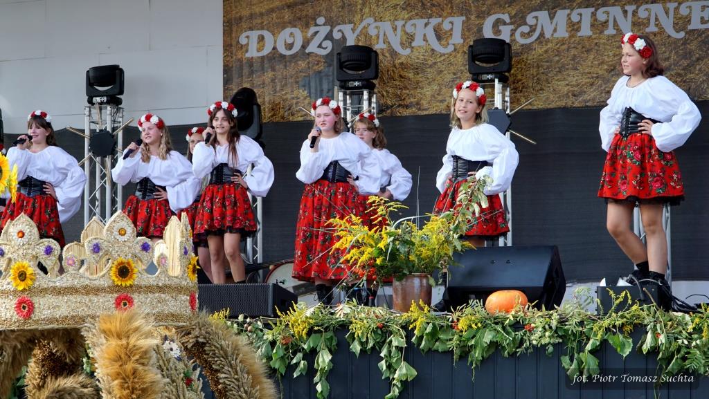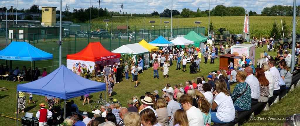 Zostały rozstrzygnięte konkursy na najpiękniejszy wieniec dożynkowy i stoisko promocyjne tradycyjnych produktów lokalnych, Znakomicie bawiło się sześć drużyn gminnych, rywalizując w dmuchanej koszykówce, piłkarskim darcie i dmuchawcu hula-hop w ramach atrakcyjnego Turnieju Sołectw.