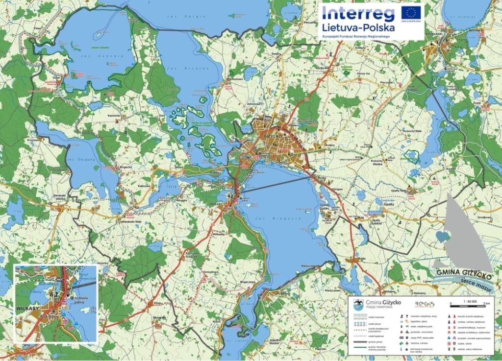Z uwagi na duże zainteresowanie nowo wybudowaną drogą rowerową po nieczynnych nasypach kolejowych publikujemy kieszonkową mapę rowerową po Gminie Giżycko wykonaną przez Wydawnictwo REGIS.