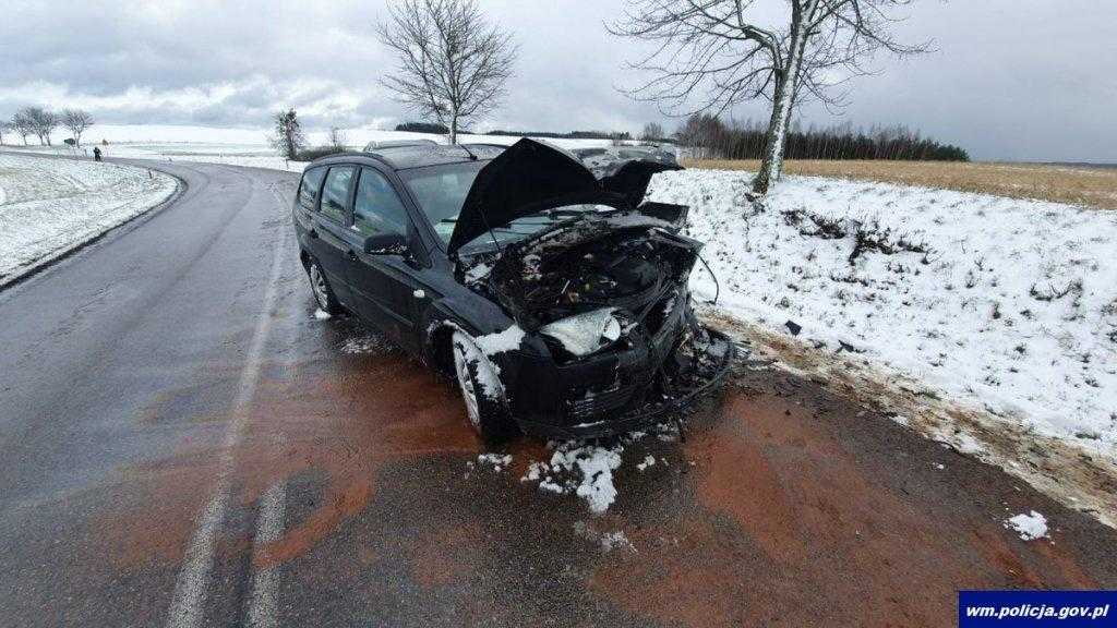 Tego samego dnia ( 14.03.2020 r.) o godzinie 08:14 dyżurny otrzymał zgłoszenie o zderzeniu dwóch pojazdów w rejonie m. Spytkowo gm. Giżycko. Funkcjonariusze na miejscu ustalili, że kierujący Mercedesem stracił panowanie nad pojazdem w wyniku czego uderzył w jadącego z naprzeciwka Nissana. Obaj kierowcy byli trzeźwi.