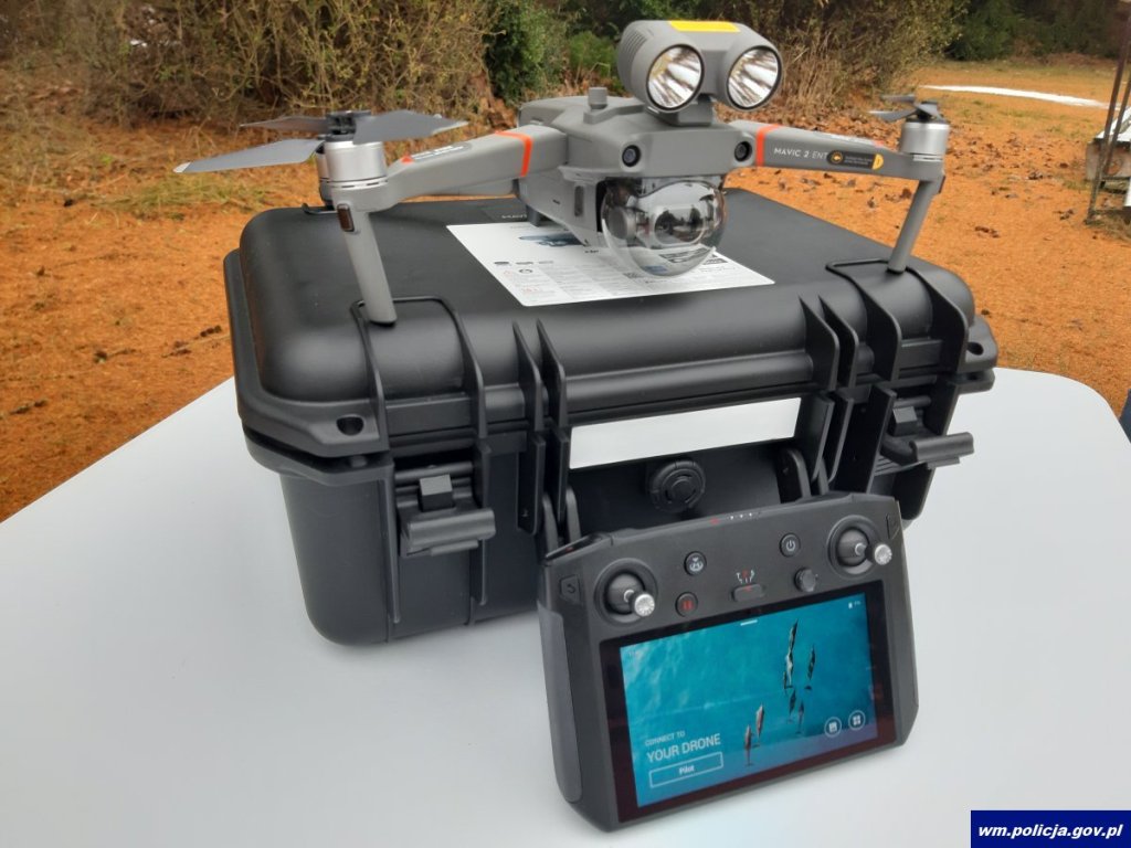 Dron DJI Mavic 2 + Smart Controller to nowy nabytek, który trafił do giżyckich policjantów. Wyposażony w kamerę termowizyjną, oświetlenie, głośnik i diodę ostrzegawczą będzie wykorzystywany w sprawdzaniu trudno dostępnych terenów m.in. podczas akcji poszukiwawczo-ratowniczych. Nowy sprzęt przekazał policjantom starosta Powiatu Giżyckiego.