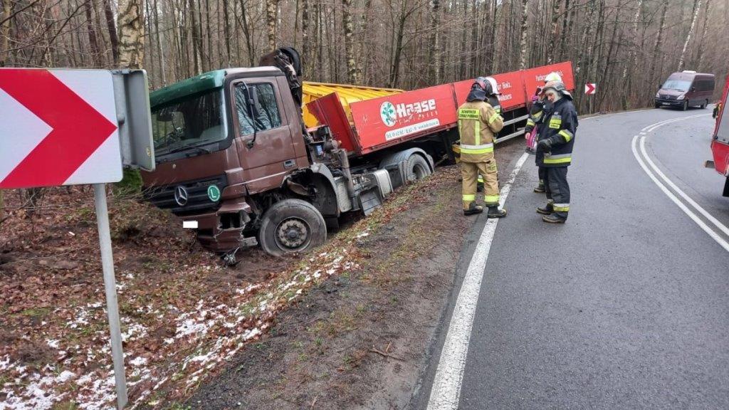 – Policjanci ustalili, że 79 – letni kierowca osobówki, na łuku drogi w prawo zaczął gwałtownie hamować, w wyniku czego uderzył w prawidłowo jadącą z naprzeciwka ciężarówkę. W skutek uderzenia ciężarowe auto z naczepą wiozące kontener, zjechało do rowu a osobówka zatrzymała się na jezdni – przekazują giżyccy funkcjonariusze