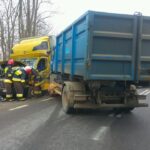 Nie minęło pół godziny, a policyjny patrol musiał obsłużyć kolejne zdarzenie drogowe. Tym razem w miejscowości Skop. gm. Ryn. Funkcjonariusze ustalili, że kierowca pojazdu ciężarowego na łuku drogi w prawo również nie dostosował prędkości do warunków panujących na drodze, w wyniku czego zjechał na przeciwległy pas jezdni i czołowo zderzył się z jadącym z naprzeciwka pojazdem dostawczym m-ki renault. Kierowcy na szczęście nie potrzebowali pomocy. Obaj byli trzeźwi.