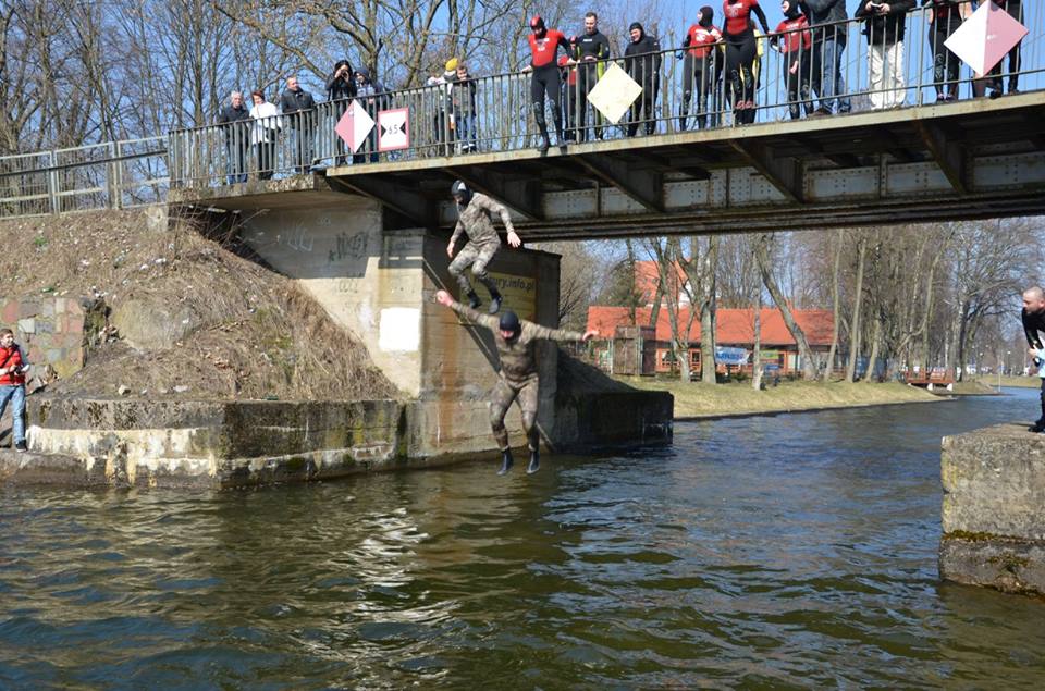 Jak oryginalnie spędzić wielkanocny poniedziałek? Można tak jak członkowie klub płetwonurków „Płetwal” z Giżycka skoczyć z mostu do lodowatej wody.