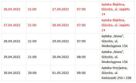 Dyżury aptek Giżycko