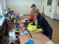 Spotkanie było okazją do przypomnienia podstawowych zasad bezpiecznego poruszania się po drogach i bezpiecznej zabawy. Policjant ds. Nieletnich przypominał jak ważne jest posiadanie przy sobie elementów odblaskowych, których używanie może zapobiec tragedii na drodze.