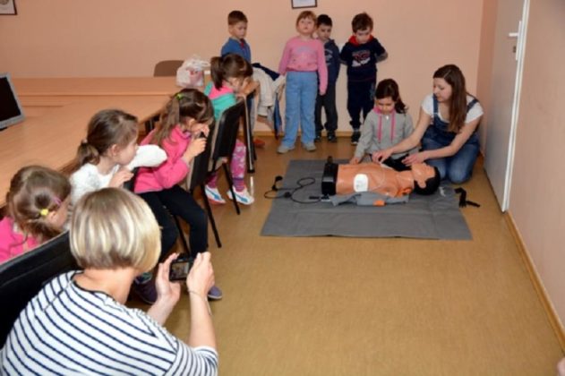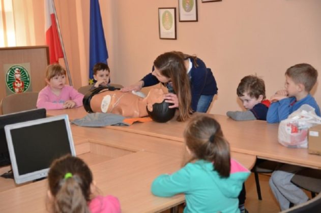 Następnie ratownik medyczny służby zdrowia W-MOSG zapoznał najmłodszych z zasadami udzielania pierwszej pomocy.