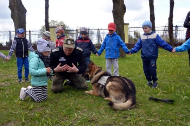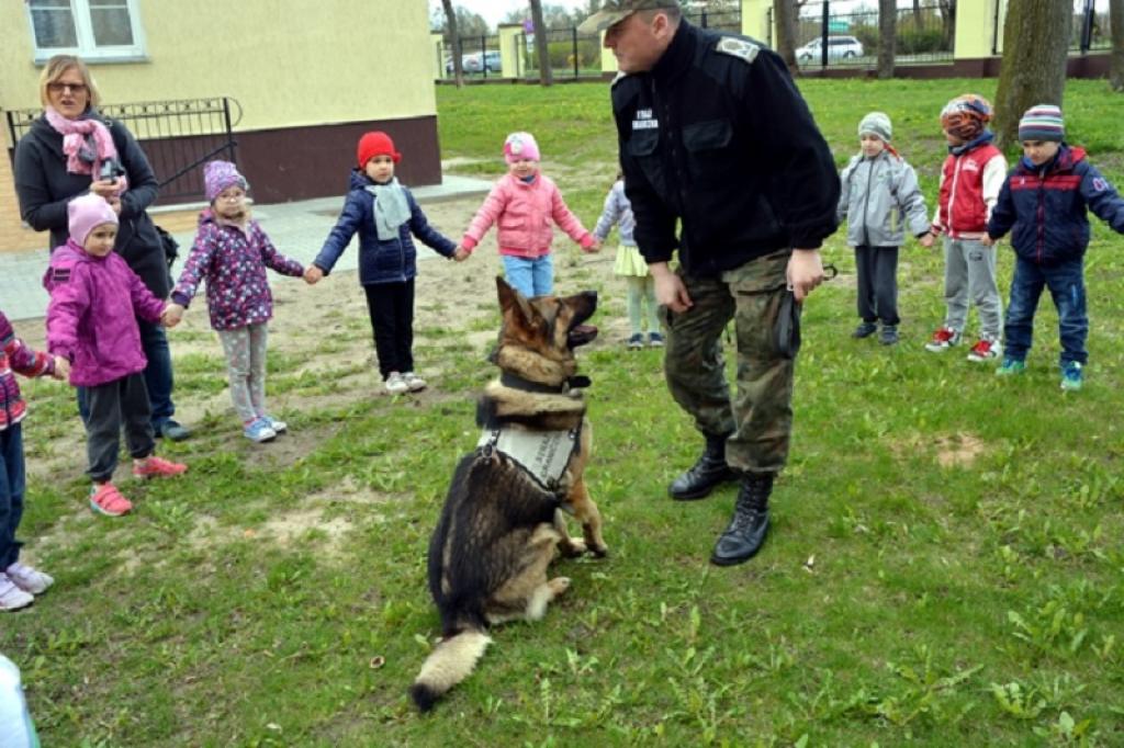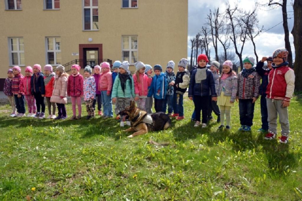 Jednak największą atrakcją były zajęcia z psem. Korzystając z doświadczenia przewodnika psa służbowego, dzieci poznały zasady bezpiecznego zachowania się w kontakcie ze zwierzęciem. Na koniec pies IKAR ożywił atmosferę, popisując się swoimi umiejętnościami, wykonując wzorowo wydawane mu polecenia.