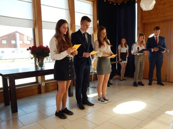 Ola Malecka śpiewem, a Hubert Gawryś grą na gitarze, Patrycja Janicka, Sara Matuszak, Wiktoria Nocna i Ewelina Plato recytując wiersze – podziękowali wszystkim pracownikom szkoły, obecnym, jak i byłym za trud włożony w ich pracę. Było przy tym trochę śmiechu, bo podczas krótkiego występu wszyscy dowiedzieli się, jak wyglądałaby szkoła, gdyby uczyły się w niej anioły, jak rozpoznać idealnego ucznia oraz z jakimi dylematami spotkał się uczeń pędzący rano do giżyckiej szkoły. Nad sprawnym przebiegiem programu czuwali konferansjerzy – Natalia Gorbacz i Marcin Gutowski, a specjalnie na ten dzień napisane podziękowania złożyli – Ula Pańków, Weronika Ilińska i Paweł Popławski. Na zakończenie Ola Szpakowska i Kacper Szukajt w imieniu wszystkich uczniów II LO złożyli życzenia i obdarowali obecnych na uroczystości pracowników symbolicznymi kwiatami. Życzenia przekazali również przedstawiciele Rady Rodziców.