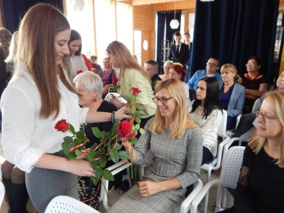 Pani dyrektor, jak co roku wręczyła nagrody zarówno nauczycielom, jak i pracownikom obsługi, dziękując za dotychczasową pracę oraz życząc sukcesów w kolejnych latach. Wśród nagrodzonych pedagogów są panie Małgorzata Szpakowska, Edyta Organek, Patrycja Marczyk-Masłowska, Barbara Tarasiewicz, Alicja Złotorzyńska i Dorota Małek, natomiast pani Mariola Plaugo otrzymała Nagrodę Starosty Powiatu Giżyckiego. Wśród pracowników obsługi szkoły zostali wyróżnieni pani Dorota Flisiak – kierownik administracyjny szkoły oraz p. Judyta Wojewnik – obsługująca sekretariat, panie Ela, Teresa i Gosia, które dbają o porządek w salach i na korytarzach oraz p. Leszek – „złota rączka”, dla którego nie ma rzeczy niemożliwych do naprawy. Wszystkim nagrodzonym gratulujemy!