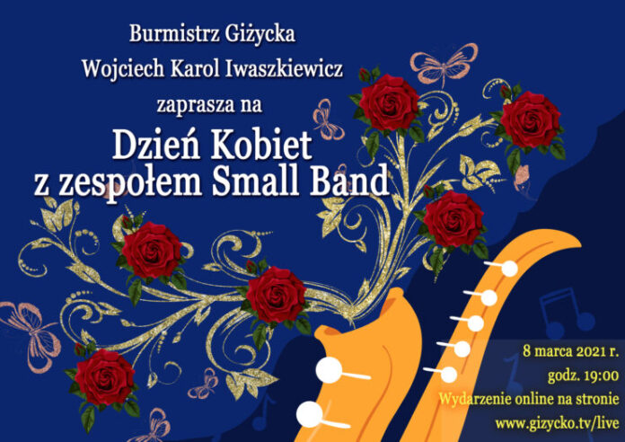 Burmistrz Giżycka Wojciech Karol Iwaszkiewicz zaprasza na Dzień Kobiet z zespołem Small Band! Transmisja na żywo z sali widowiskowej GCK w poniedziałek 8 marca o godz. 19.00 na stronie www.gizycko.tv/live.