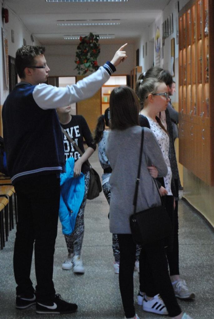 W sobotę 23 kwietnia, w Publicznym Gimnazjum im. Szarych Szeregów w Wilkasach odbył się Dzień Otwarty Szkoły. Zwiedzanie budynku, prezentacja projektów gimnazjalistów, kawiarenka słodkości – to tylko niektóre z atrakcji, które czekały odwiedzających szkołę szóstoklasistów i ich rodziców. Po Giżycku jeździł „wesoły autobus”, który można było usłyszeć z daleka, a w nim słodki poczęstunek i niemalże dyskoteka! Kto by pomyślał, że taki autobus może ich dowieźć do „Gimbazy” w Wilkasach. Od godziny 9.00 na zwiedzających czekała grupa motocyklowa „Perkun” z Giżycka, z niesamowitymi motocyklami. Jedną z atrakcji była przejażdżka na wybranym motorze. W każdej klasie coś się działo – na szóstoklasistów czekały potyczki matematyczne, pierwsza lekcja z języka niemieckiego, zabawy z angielskiego na tablicy interaktywnej, itp.. Można było zobaczyć dobrze wyposażoną salę gimnastyczną, salę fitness z lustrami na ścianie, profesjonalną siłownię z ciężkim sprzętem oraz kręgielnię. W oprowadzaniu po szkole szóstoklasistom towarzyszyli starsi koledzy, którzy opowiadali, co ciekawego dzieje się w gimnazjum, jak można aktywnie spędzić czas po lekcjach na licznych kołach zainteresowań oraz jakie mamy szkolne drużyny sportowe. Duże wrażenie zrobiły szafki na książki, które są dużym odciążeniem dla zmęczonych kręgosłupów młodych ludzi. Na sali gimnastycznej można było zobaczyć pokaz Mistrzów i Wicemistrzów Polski w Kreatywności, który cieszył się dużym zainteresowaniem. Po pokazie można było wziąć udział w pokazowej lekcji na basenie w Parku Wodnym. Szkołę oprócz szóstoklasistów odwiedzili także absolwenci gimnazjum, którzy nie tak dawno opuścili mury placówki. Z uśmiechem wspominali naukę oraz czas spędzony w tej szkole. To pokazuje jak wspaniałą więź może stworzyć szkoła, a wracający absolwenci są na to świetnym dowodem. Dzień Otwarty był pełen emocji, zakończył się o godzinie 12.00. Żaden z gości nie wyszedł z pustymi rękoma, każdy dostał szkolne gadżety w postacie długopisu oraz smyczy, dodatkowym prezentem był bilet na wejście na basen. Dziękujemy za odwiedzenie szkoły i zapraszamy za rok!