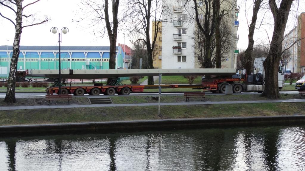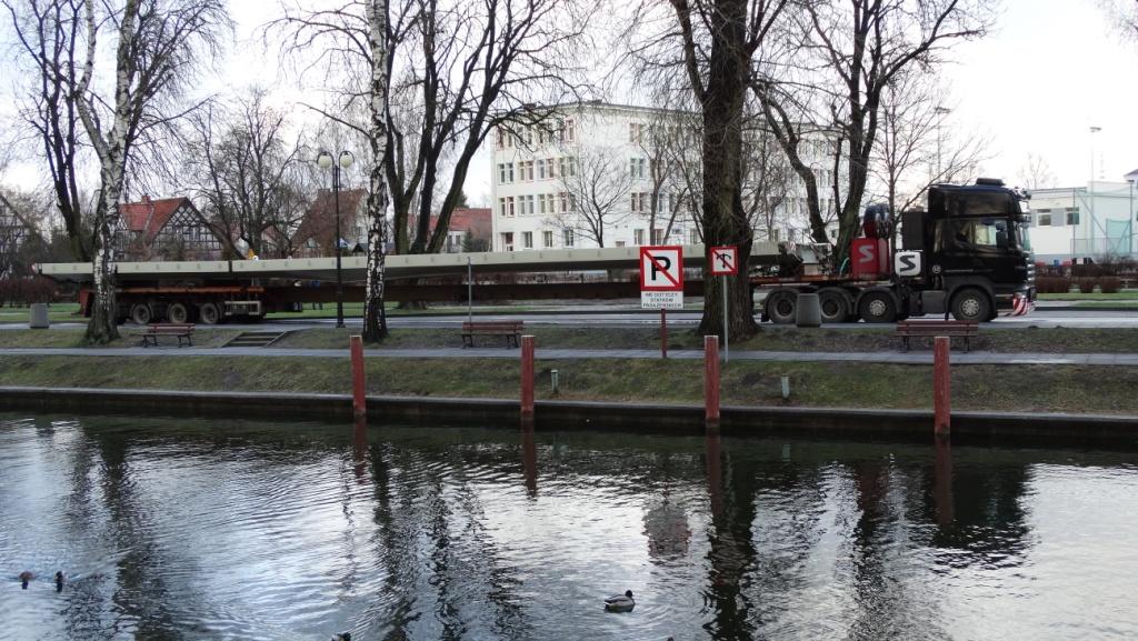 Do Giżycka dotarły pierwsze elementy nowej kładki, która ma powstać nad Kanałem Łuczańskim.