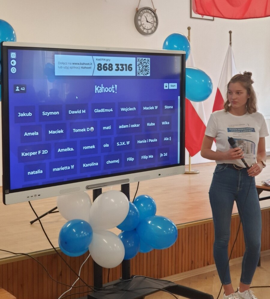 Z tej okazji pod kierunkiem koordynatora projektu Pani Małgorzaty Szpakowskiej uczniowie przygotowali multimedialną prezentację i quiz na temat efektów działań szkolnej grupy projektowej uczniów i nauczycieli z Gizewiusza.