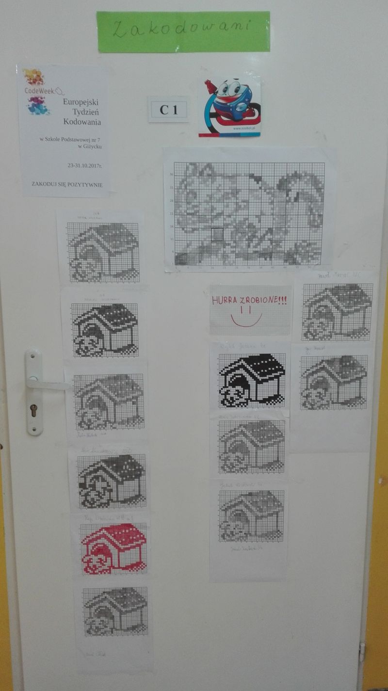 Pani Danuta Chrostowska przekonała swoich uczniów z klasy III e, że kodowanie może być smaczne. Dzieci pracowały w grupach – w szkole i w domu. Wykonały wiele ładnych prac, chociaż wcale nie było to takie proste. Najbardziej podobały się dzieciom zajęcia połączone z jedzeniem: SMACZNE KODOWANIE. Zakodowane obrazy tworzono ze słodyczy. Ich żywotność była jednak krótkotrwała – zakończyła się wspólną konsumpcją.