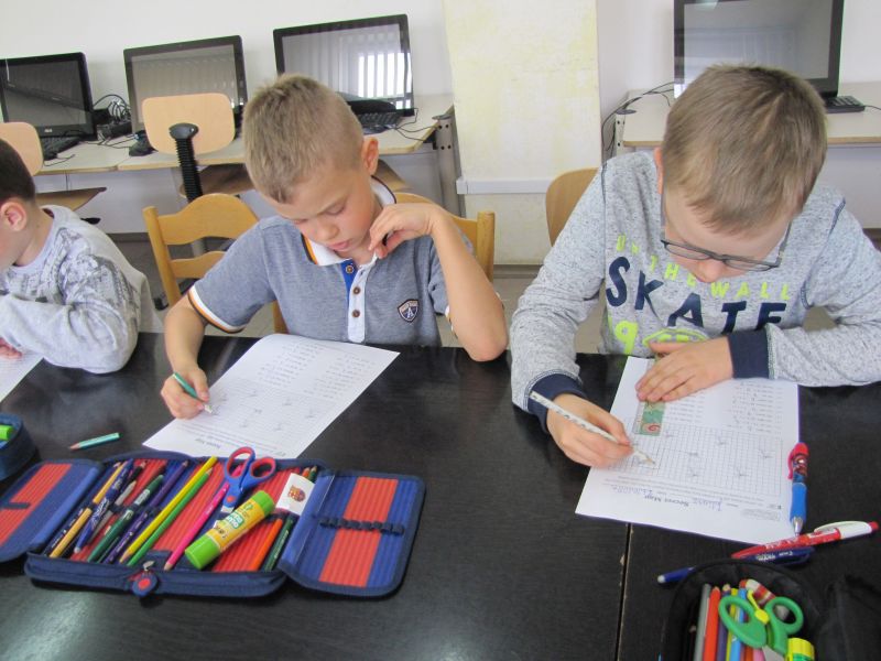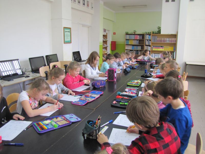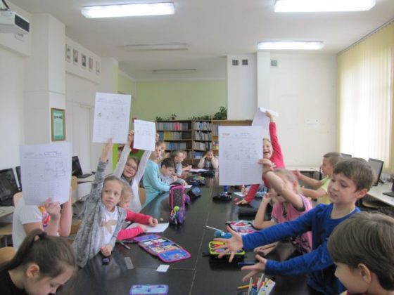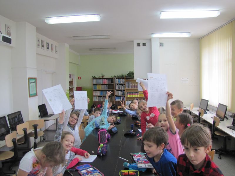 Pani Ewa Kostun przeprowadziła w swojej klasie III d zajęcia w czytelni biblioteki szkolnej. Dzieci otrzymały do wykonania 2 karty pracy: Secret Map oraz Coordinate Picture. Większość uczniów zakończyła swoją pracę uzyskując prawidłowe rozwiązanie. Niektórym pomogła wychowawczyni. Dzieci miały okazję również poznać nowe słowa z języka angielskiego, ponieważ polecenia i kody w kartach pracy były napisane właśnie w tym języku. Zajęcia bardzo się wszystkim podobały!