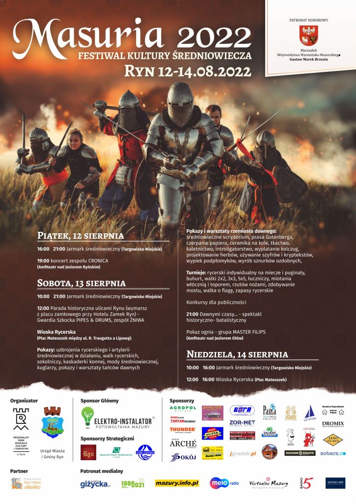 Zapraszamy w dniach 12-14 sierpnia 2022 r. do Rynu na kolejną edycję Festiwalu Kultury Średniowiecza Masuria 2022.