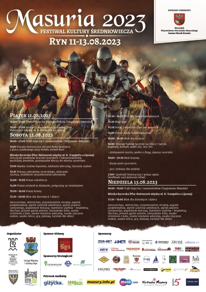 W dniach 11-13 sierpnia w Rynie odbędzie się Festiwal Kultury Średniowiecza Masuria 2023. Poniżej program wydarzenia.