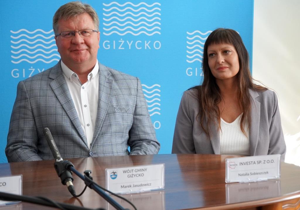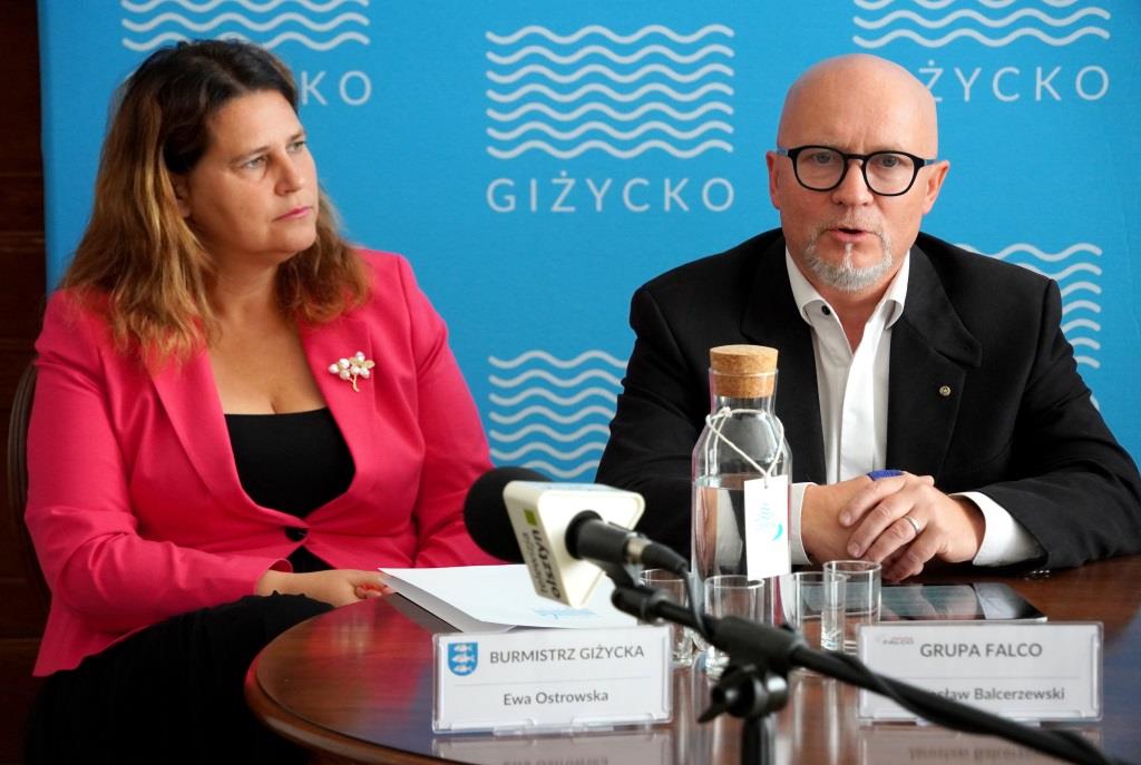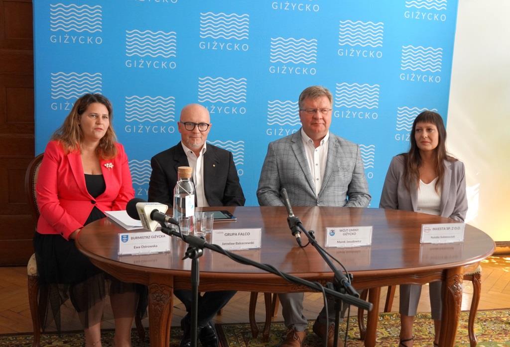 W spotkaniu uczestniczyli Burmistrz Giżycka Ewa Ostrowska, Prezes Grupy Falco Jarosław Balcerzewski, prezes spółki INVESTA Natalia Sobieszczyk i Wójt Gminy Giżycko Marek Jasudowicz.