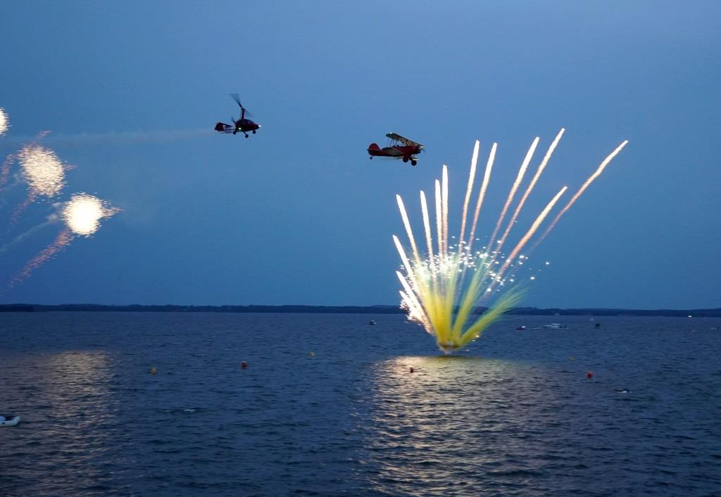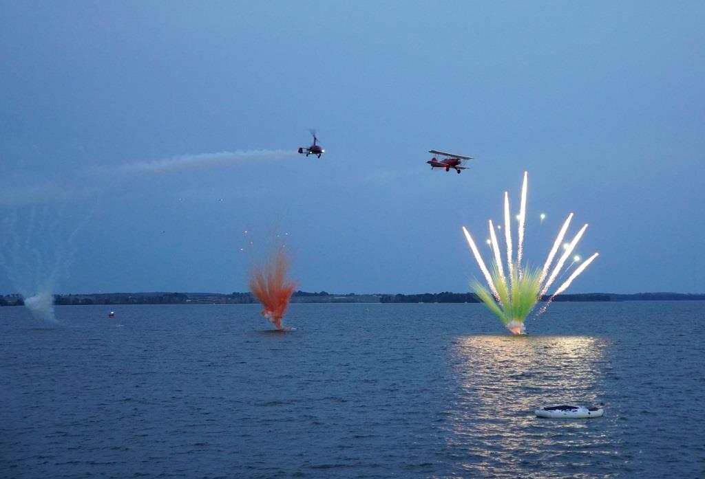 Festiwal Wiatru przyciągnął do Giżycka prawdziwe tłumy. I nie ma co się dziwić, bo niesamowite lotnicze pokazy nad taflą jeziora Niegocin, robiły na publiczności ogromne wrażenie. Swoje powietrzne popisy zaprezentowali m.in. Airborne Pyrotechnics, BushCat Demo Team, Dwójka z AW, Flying Dragons Team, Grupa Floty śmigłowcowej współorganizatora – INVESTA Sp. z o. o., Grupa Lotnik Training, Marek Choim Aerobatics, ORLEN Grupa Akrobacyjna Żelazny, Owedyk&Hajdukiewicz, Pawel „Lojak” Kozarzewski.
