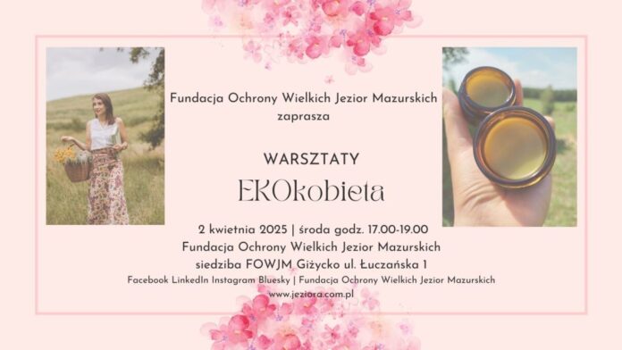 Fundacja Ochrony Wielkich Jezior Mazurskich zaprasza na warsztaty EKOkobieta, które odbędą się 2 i 3 kwietnia 2025 w siedzibie FOWJM przy ul. Łuczańskiej 1 w Giżycku.