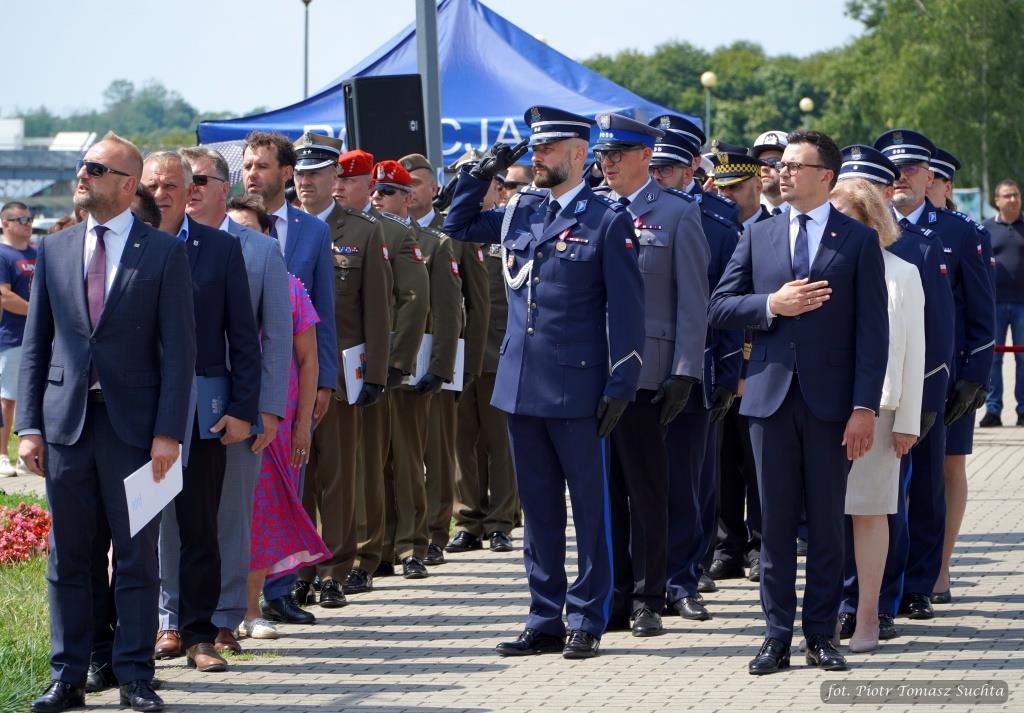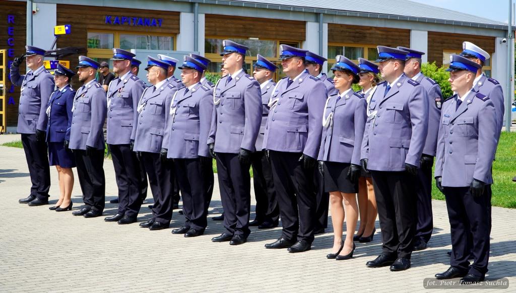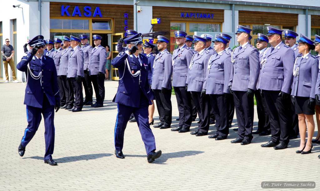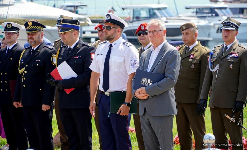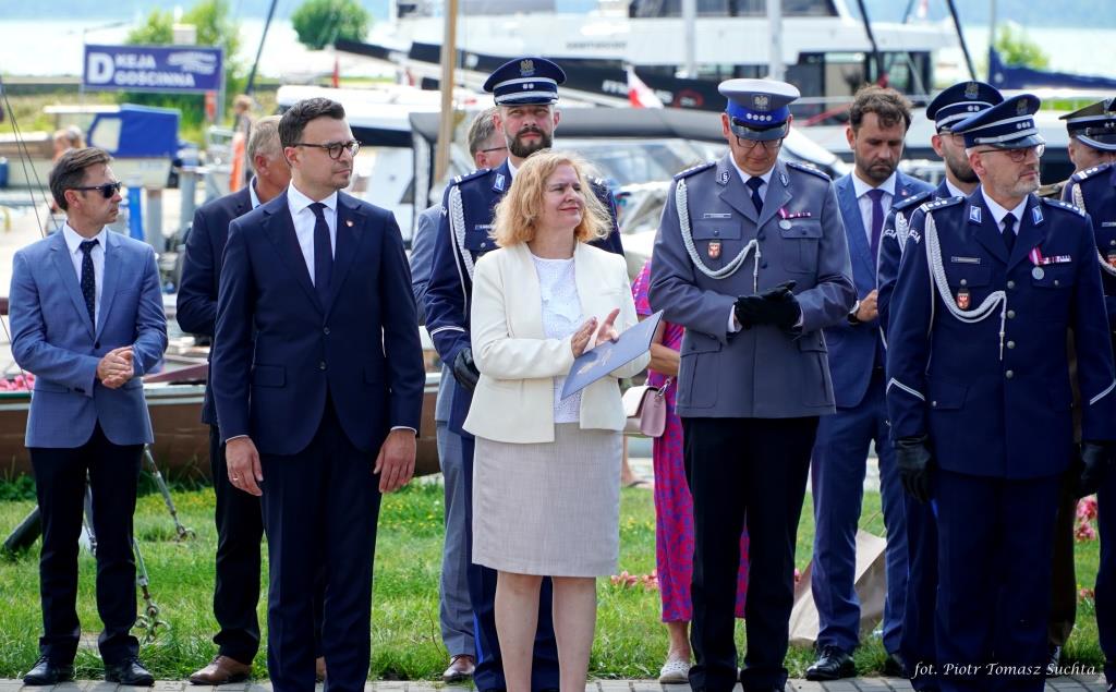 Na terenie portu Ekomarina w Giżycku policjanci obchodzili swoje święto. Z tej okazji odbył się uroczysty apel z udziałem I Zastępcy Komendanta Wojewódzkiego Policji w Olsztynie insp. Jarosławem Brzozowskim oraz zaproszonymi gośćmi.