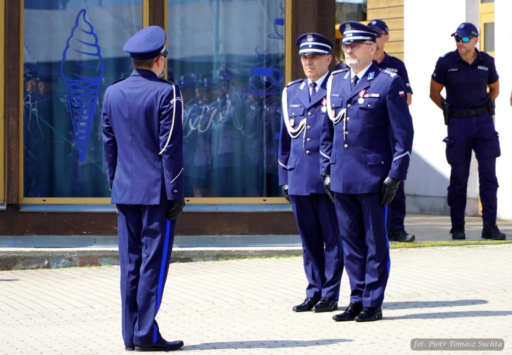 Po życzeniach i podziękowaniach Dowódca uroczystości złożył I Zastępcy Komendanta Wojewódzkiego Policji w Olsztynie meldunek o zakończeniu uroczystego apelu.