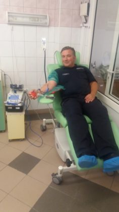 Tak też było w piątek (08.09) w punkcie Terenowego Oddziału RCKiK w Giżycku. Tym razem w punkcie krwiodawstwa zjawili się policjanci wydziału prewencji, wydziału kryminalnego oraz Pierwszy Zastępca Komendanta Powiatowego Policji w Giżycku kom. Sławomir Ozygała. Jak mówią sami funkcjonariusze, przekazują ten dar bo mają świadomość niesienia pomocy innym potrzebującym osobom.