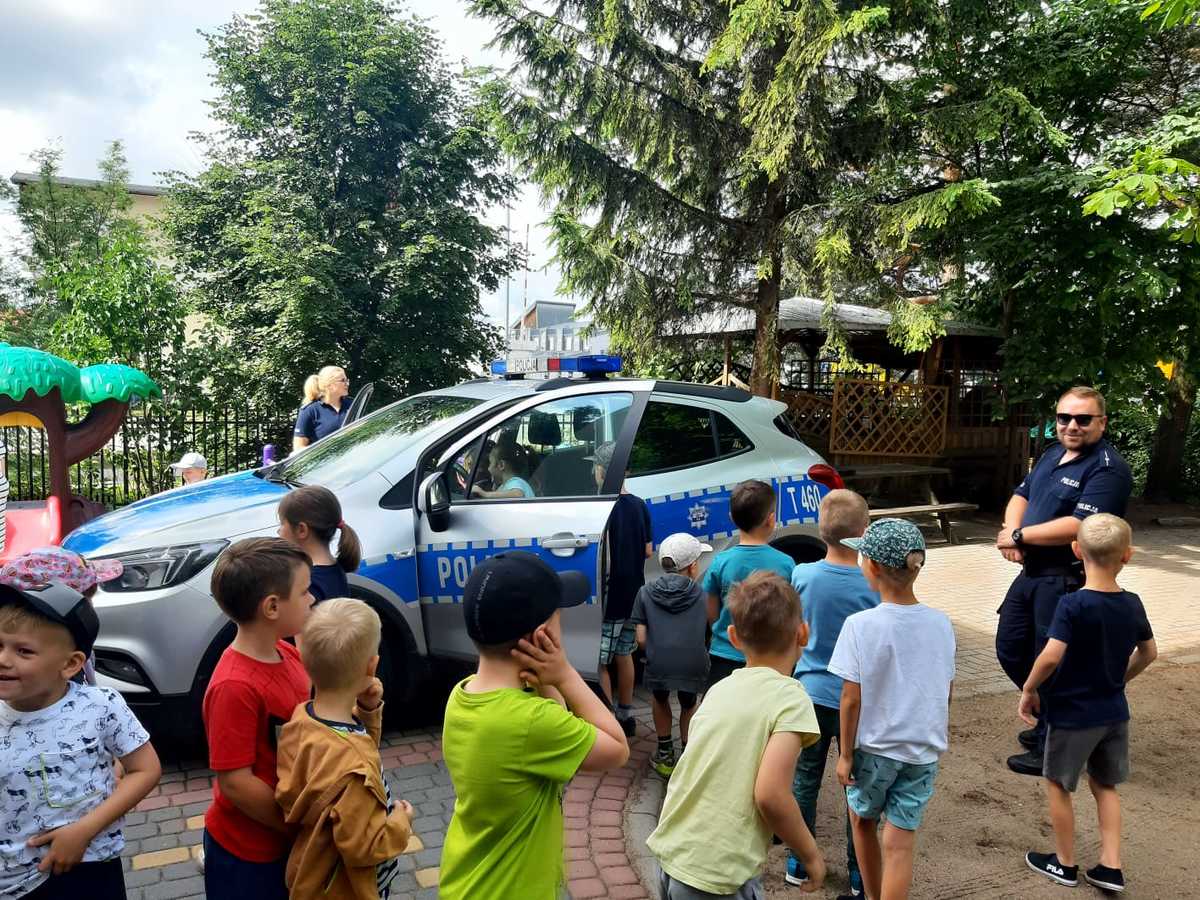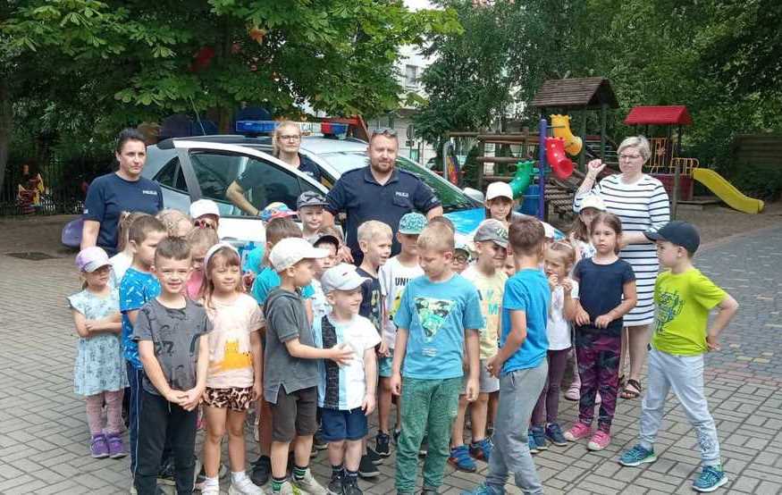 Funkcjonariusze przypomnieli najmłodszym m.in. numery alarmowe oraz sposób podawania informacji przez telefon, zasady poruszania się po drogach i bezpieczeństwa nad wodą.