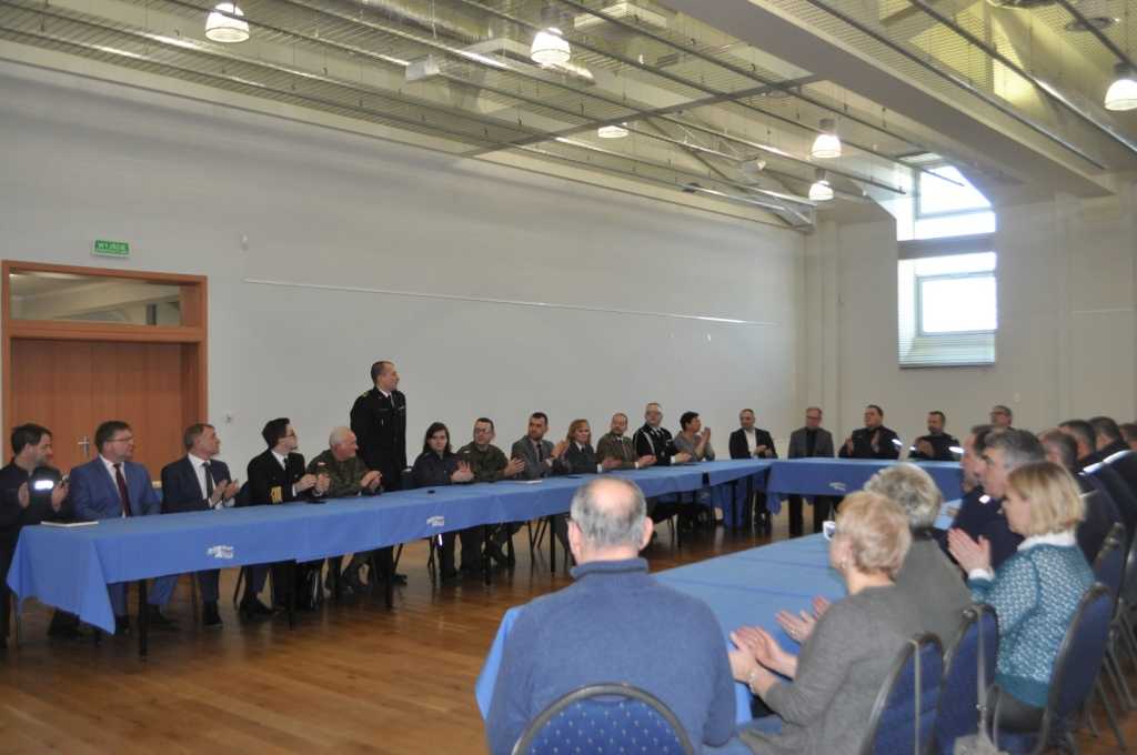 W piątkowym spotkaniu (07.02.2020 r.) podsumowującym 2019 rok oprócz kierownictwa Komendy Powiatowej Policji w Giżycku udział wzięli wszyscy naczelnicy wydziałów, kierownicy posterunków, kierownicy komórek oraz pracownicy cywilni jednostki, a także zaproszeni goście: Komendant Wojewódzki Policji w Olsztynie nadinsp. Tomasz Klimek, Starosta Giżycki Mirosław Drzażdźewski, Burmistrz Miasta Giżycka Wojciech Karol Iwaszkiewicz, Burmistrz Miasta i Gminy Ryn Jarosław Filipek, Wójt Gminy Giżycko Marek Jasudowicz, Wójt Gminy Miłki Barbara Mazurczyk, Wójt Gminy Kruklanki Bartłomiej Kłoczko, Wójt Gminy Wydminy Radosław Król, Zastępca Prokuratora Rejonowego w Giżycku Maciej Prokop oraz przedstawiciele służb mundurowych działających na rzecz poprawy bezpieczeństwa i na co dzień współpracujących z giżycką policją.