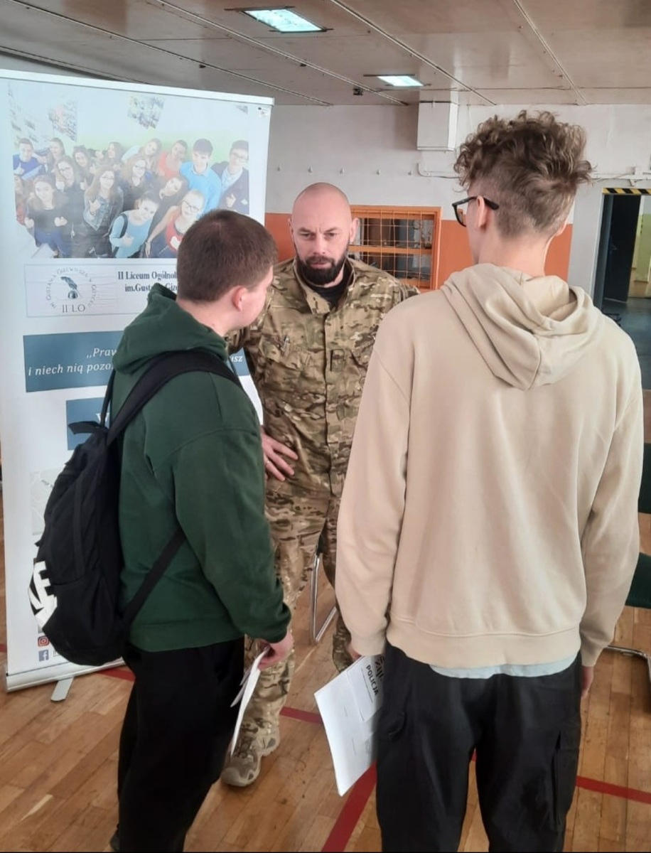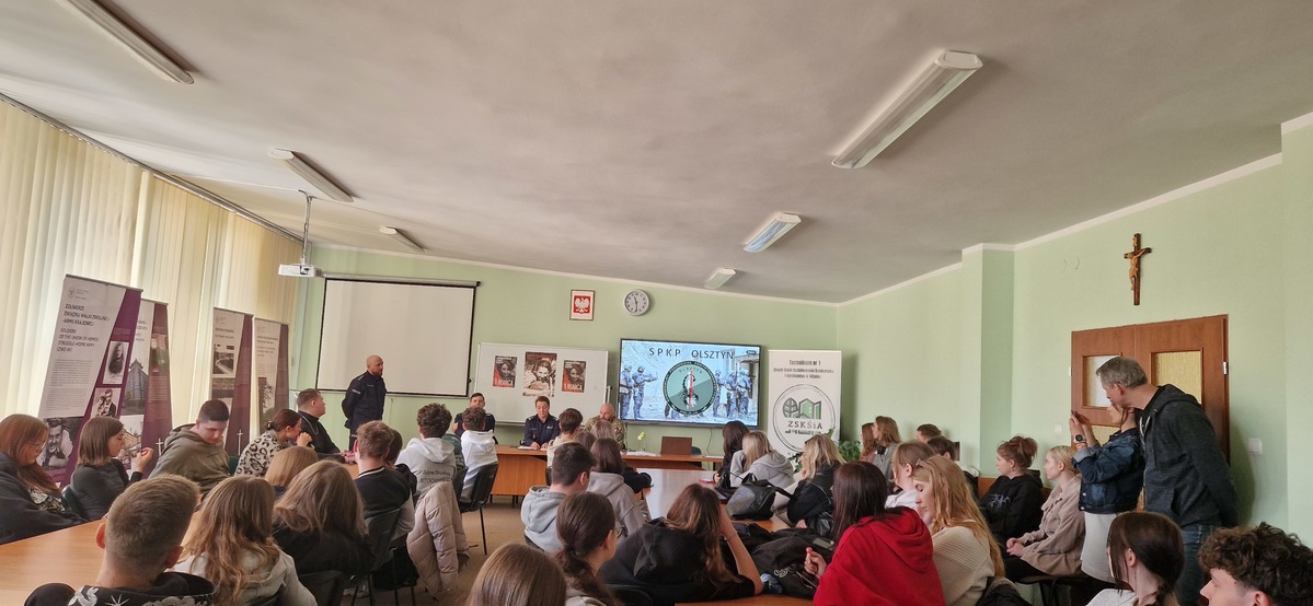 Wyjątkowym punktem spotkania była obecność kom. Piotra Książka, Zastępcy Dowódcy Samodzielnego Pododdziału Kontrterrorystycznego Policji w Olsztynie. Jako pierwszy polski policjant ukończył zaawansowany kurs operatorów SWAT w USA. Podczas swojej prelekcji przedstawił rolę i zadania funkcjonariuszy SPKP oraz wymagania rekrutacyjne do tej elitarnej jednostki.