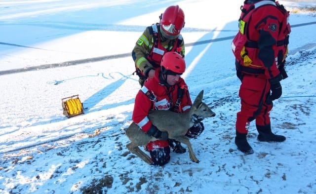 Tej zimy strażacy interweniowali już m.in. ratując małą sarnę i łosie, pod którymi załamał się lód.