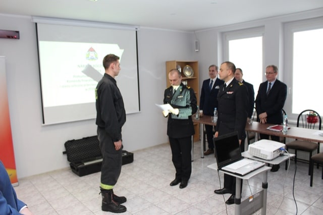 Po podsumowaniu minionego roku Zastępca Warmińsko- Mazurskiego Komendanta Wojewódzkiego PSP oraz Komendant Powiatowy PSP wręczyli awans na wyższe stanowisko służbowe dla st. str. Macieja Kazińca.