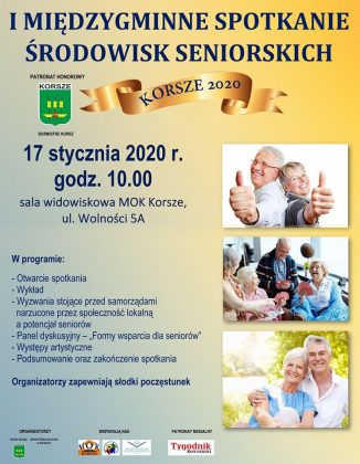 Spotkanie otworzył Burmistrz Korsz Ryszard Ostrowski, głos zabrał także Starosta Kętrzyński Michał Kochanowski. Obydwaj samorządowcy podkreślili, że dbałość o mieszkańców, w szczególności o te grupy społeczne, które są zagrożone wykluczeniem społecznym, powinna być dla włodarzy gmin sprawą priorytetową. Następnie Przewodnicząca Gminnej Rady Seniorów w Korszach Elżbieta Kozłowska podziękowała za tak liczną obecność.