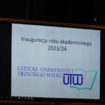Społeczność uniwersytecka, w obecności zaproszonych gości rozpoczęła rok akademicki. W czasie wystąpienia inauguracyjnego dyrektor Ewa Ostrowska zaprezentowała bogatą działalności Giżyckiego Uniwersytetu III Wieku. Podkreśliła ogromne zainteresowanie, a także aktywność studentów nie tylko w roku akademickim, ale i w przerwie wakacyjnej, podczas której słuchacze nie nudzili się, a wręcz przeciwnie był to dla nich czas wypełniony wycieczkami, regatami, marszami nordic walking, różnymi rozgrywkami, wydarzeniami artystycznymi, w których bardzo chętnie brali udział. Dyrektor przedstawiła plan zajęć na najbliższy semestr oraz przekazała wszelkie informacje organizacyjne.