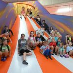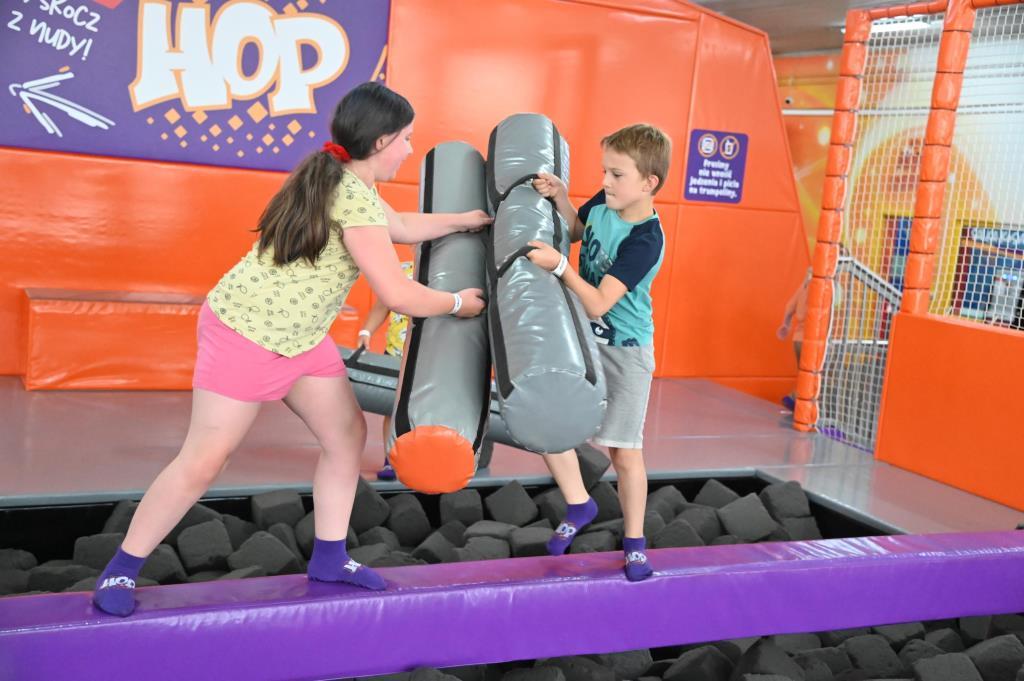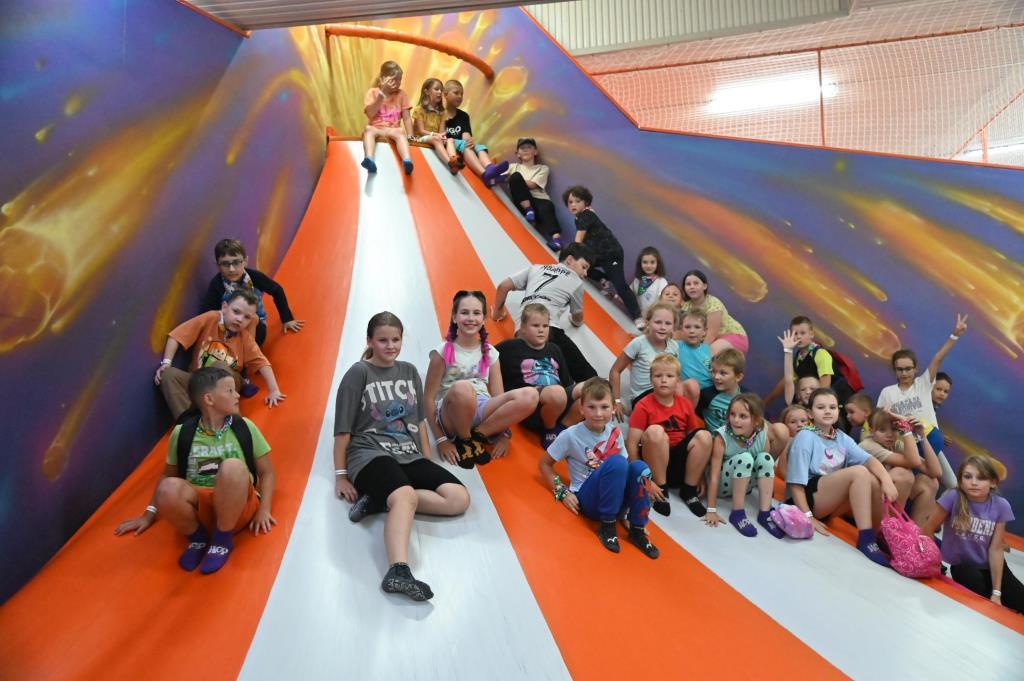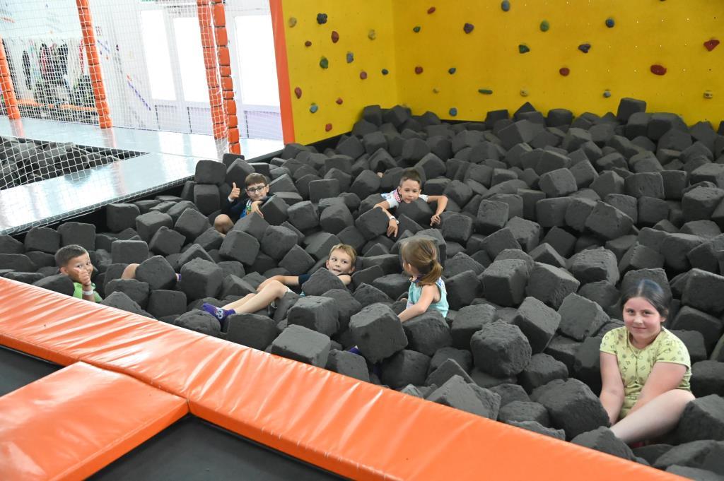 Kolejnego dnia pojechaliśmy do Ełku, gdzie przez prawie dwie godziny w Parku Trampolin trenowali ekwilibrystykę na wyrzucających ich w górę gąbkach, bawili się w gladiatorów, skakali do basenów z wielkimi, miękkimi klockami. Jeździli również na tyrolce, korzystali ze zjeżdżalni pontonowej, tubowej i ekstremalnej oraz toru ninja. Zdecydowanie największe wrażenie zrobił jednak na nich wulkan, połączenie ścianki wspinaczkowej i zjeżdżalni. Zaskakującym prezentem dla naszych podopiecznych były usytuowane w piwnicy, nowe liczne sale z mnóstwem dmuchanych urządzeń, po których chodzili, skakali, robili ponadto widowiskowe salta. Ściany utrzymane były w niebieskiej tonacji nawiązującej do morskich głębin z robiącymi niesamowite wrażenie ośmiornicami i innymi zwierzętami zamieszkującymi wody oceanów.
