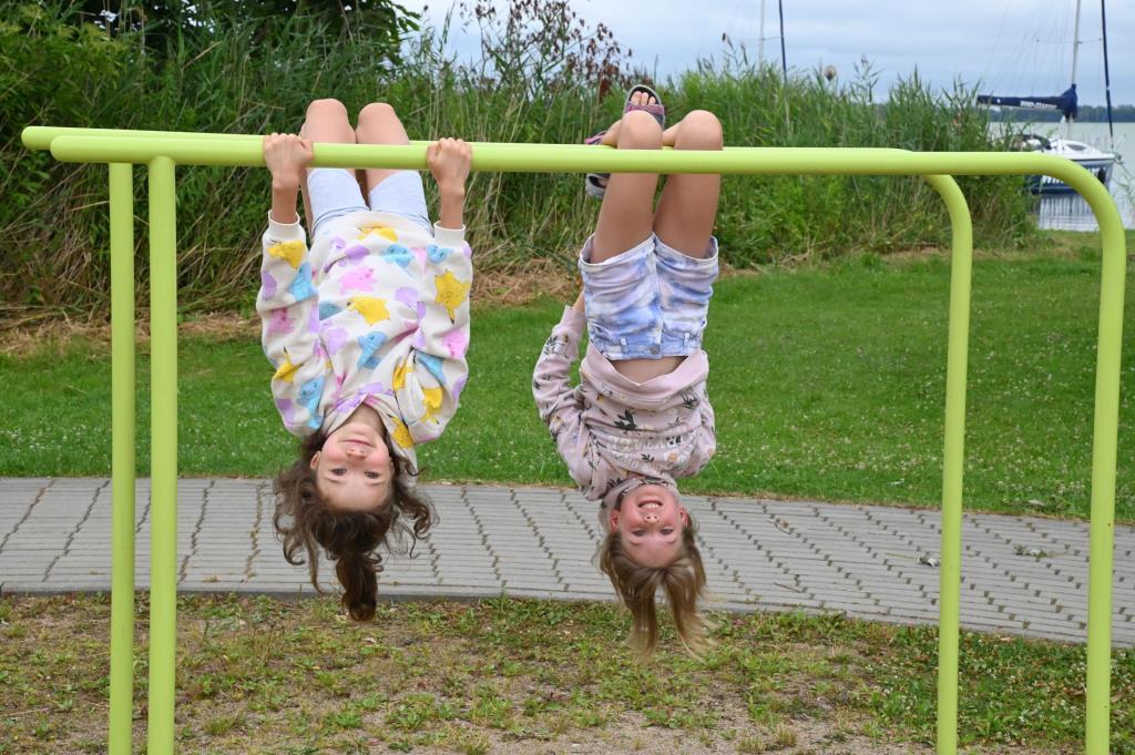 Zajęcia rozpoczęły od przygotowania pamiątkowego breloczka z włóczki i koralików. Później ruszyły nad Niegocin urokliwą promenadą. Nasi podopieczni bawili się na plenerowej siłowni i placu zabaw, po czym pokazaliśmy im niedawno oddaną do użytku Eko Plażę. Opanowali huśtawki i karuzelę, relaksowali się na nowiutkich leżakach, oglądając wspaniałe widoki na jezioro.