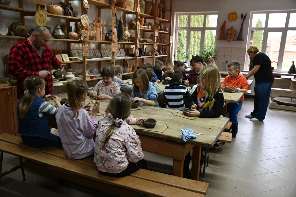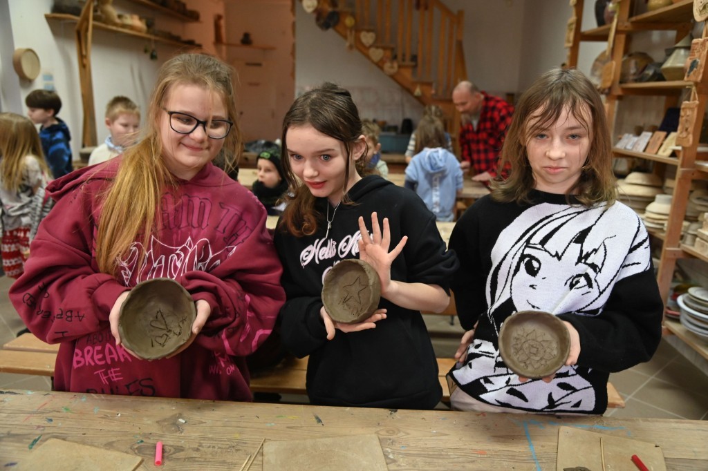Pierwszy tydzień ferii w naszym ośrodku zakończyły zajęcia psychoedukacyjne, które pod hasłem „Mam w sobie moc” poprowadziła psychoterapeutka Izabela Zambrowska. Dzieci mówiły, jak czuć się w życiu bezpiecznie i jak zachowywać się, aby zajęcia przebiegały bezproblemowo. W miniony poniedziałek udaliśmy się do Węgorzewa, gdzie zwiedzaliśmy przepięknie położony nad wodą Park Etnograficzny, będący częścią Muzeum Kultury Ludowej. Duże wrażenie zrobiły na naszej grupie drewniane chaty mazurskie z wyposażeniem, remiza z odrestaurowanym wozem strażackim i szachulcowa kuźnia. W pracowni garncarskiej dzieciaki pod okiem instruktorów lepiły z gliny oryginalne naczynia, m.in. misy i dzbanki.