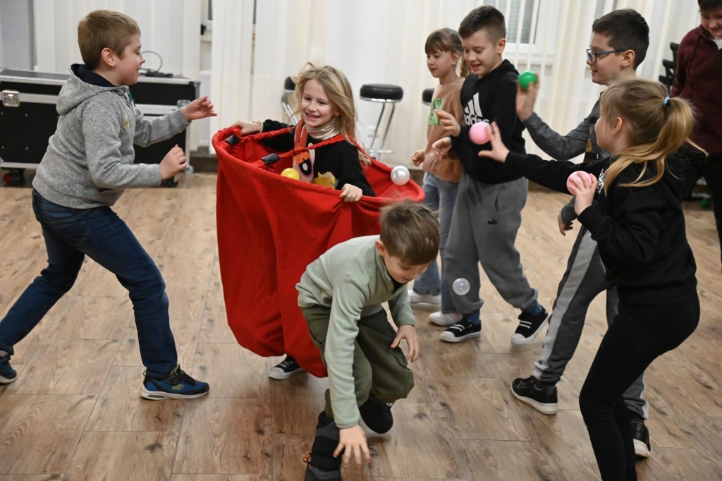 Bardzo szybko upłynęły ferie zimowe z GOKiR Wilkasy. W 25-osobowym gronie zaczęliśmy je warsztatami teatralnymi z instruktorem Jarosławem Olejnikiem, który poprzez interesujące zabawy wprowadzał dzieci w arkana tej dziedziny sztuki.