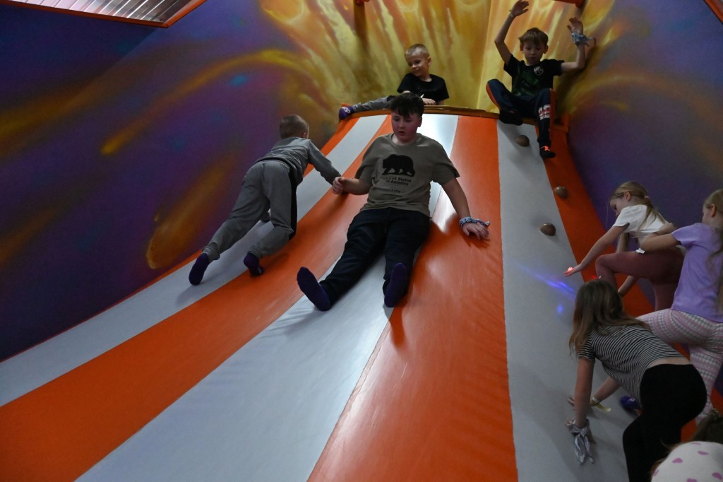 W miniony czwartek przez cztery godziny nasi podopieczni doskonale bawili się na basenie i w sali gimnastycznej Parku Wodnego Wilkasy. Pluskali się w wodzie, korzystali z jazuzzi, sztucznej rzeki oraz zjeżdżalni. Za sprawą instruktorów Wspinaczkowego Klubu Sportowego „Piżmakowe Wiewióry” szybko nabywali umiejętności wspinania się po kilku trasach różnej trudności, grali w piłkę obracając się w dmuchanych kulach Bumper Ball, plastikowymi kulami strzelali z pneumatycznych dziecięcych pistoletów, na czas przenosili gimnastyczne materace.