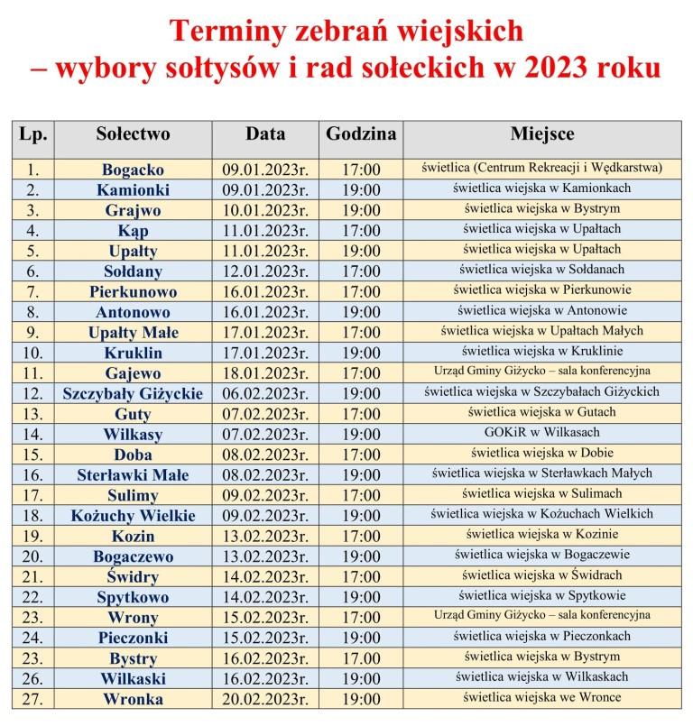 Terminy zebrań wiejskich w Gminie Giżycko podczas, których odbędą się wybory sołtysów i rad sołeckich na koleją kadencję.