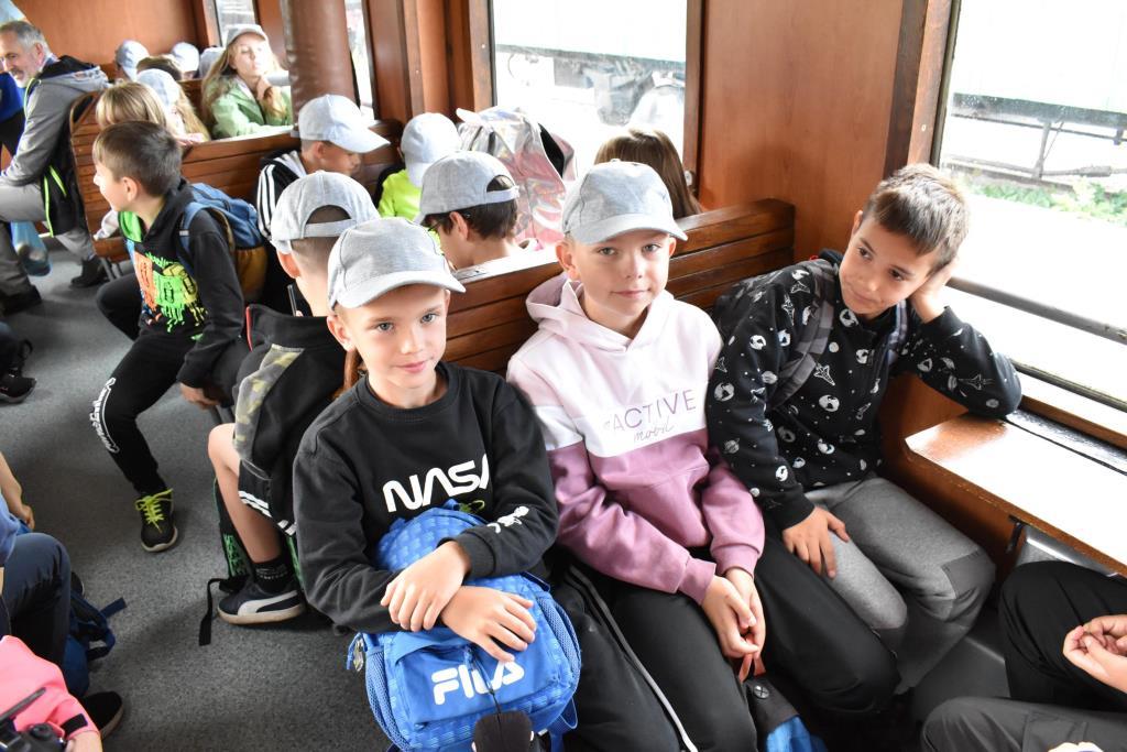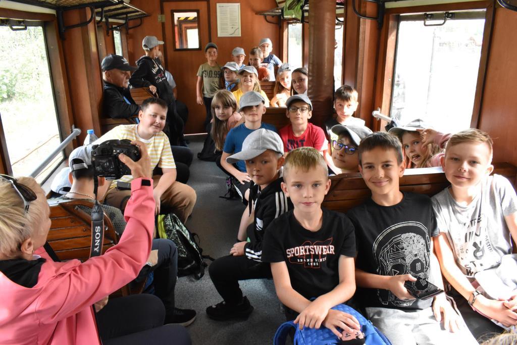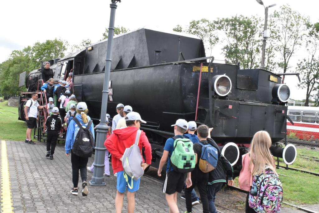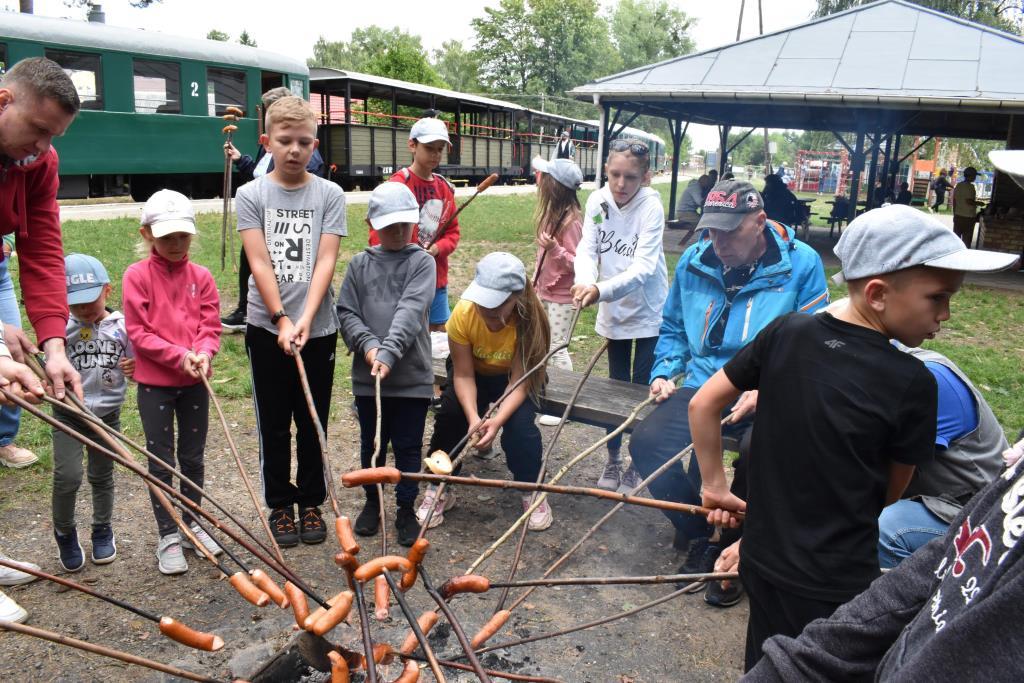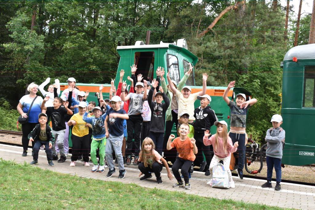 Drugi tydzień rozpoczęliśmy zajęciami animacyjnymi w sali widowiskowej ośrodka. Były zabawy w kotka i myszkę, tworzenie wyrazów w mobilnym scrabble, wyzwanie stópki czy robienie przepięknych gobelinów techniką makramy. Kolejny dzień to malownicza wycieczka Ełcką Kolejką Wąskotorową z Ełku do Sypitek wzdłuż jezior Selment Wielki i Regielskie i z powrotem. W trakcie postoju pociągu w Sypitkach dzieci mogły zaspokoić głód samodzielnie przygotowanymi na ognisku kiełbaskami i bawić się wspinając na plenerowym placu zabaw. Po półtoragodzinnej przerwie ponownie zajęliśmy swe miejsca na drewnianych siedzeniach w starych, oryginalnych wagonach, obserwując piękne tereny na 15-kilometrowej trasie oraz wypatrując przebiegających leśnych zwierząt. A później na stacji Ełk Wąskotorowy był czas na zwiedzanie starych lokomotyw i wagonów oraz oglądanie starego sprzętu kolejowego: latarni, pomp, centrali telefonicznych i dziurkaczy do biletów.