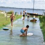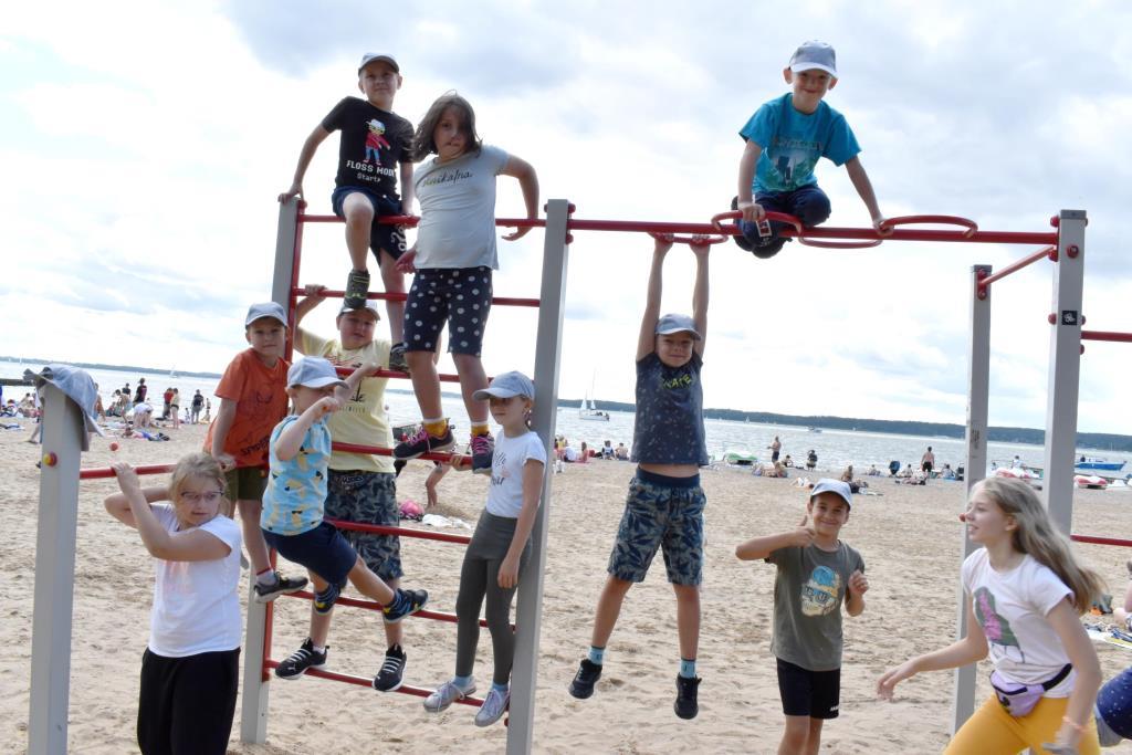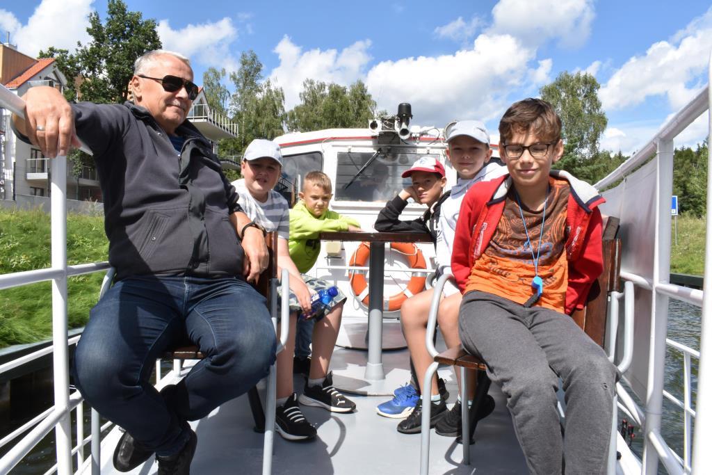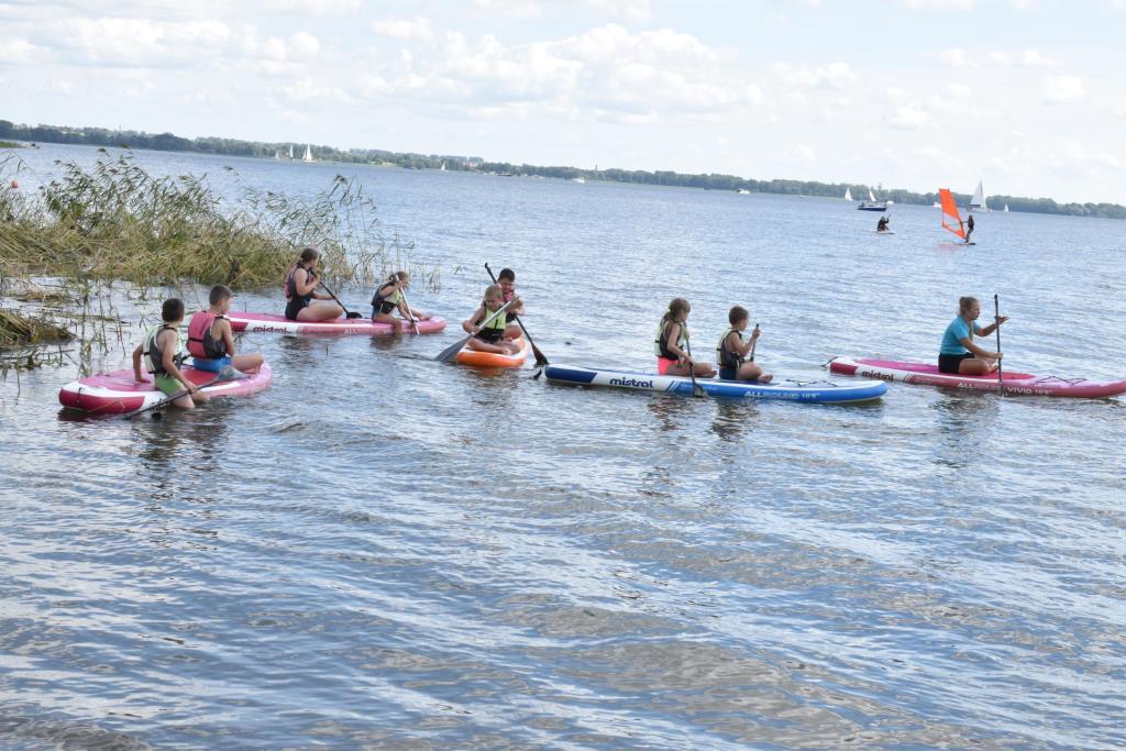 Środa powitała nas słonecznym dniem, który postanowiliśmy spędzić na statku Bosman I płynąc przez kanały Niegociński i Piękna Góra oraz jeziora Niegocin i Kisajno. Na brzegu czekała na dzieci wspaniała atrakcja – widok na największą jednostkę pływającą na Mazurach „Classic Lady”, a potem degustacja lodów i zakupy w przydrożnych kramikach. W czwartek spędziliśmy miłe chwile w Wiosce Surfów, gdzie dzieci ekspresowo uczyły się techniki pływania na desce SUP i wiosłowania w przybrzeżnej części Niegocina. Ślizgały się na płytkiej wodzie, korzystając z profesjonalnego toru skimboardowego.