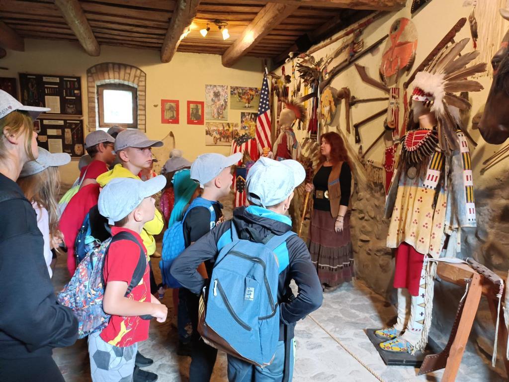 Wtorek był poświęcony wizycie w Muzeum Indian w Spytkowie. Zwiedzali je i brali udział w grach i zabawach indiańskich, takich jak strzelanie z łuku, pokonywanie toru przeszkód oraz rzut włócznią. Był też czas na sporty ekstremalne w Parku Linowym „Wiewióra” w Giżycku, gdzie każdy dobierał sobie trasę według własnych umiejętności. Okazało się tam, że nie wszyscy, mimo pełnego zabezpieczenia, radzili sobie i trzeba było szybko ich ściągać. Inni natomiast, choć trochę się bali, znakomicie zaliczali wszystkie przeszkody. Był też czas na smakowite lody przy moście obrotowym i pamiątkowe zdjęcie na plaży miejskiej. Na zajęcia w Parku Wodnym Wilkasy nikogo nie trzeba było namawiać, gdyż czekały na nich rywalizacja w kręgielni, zabawa na basenie oraz gra w dwa ognie.